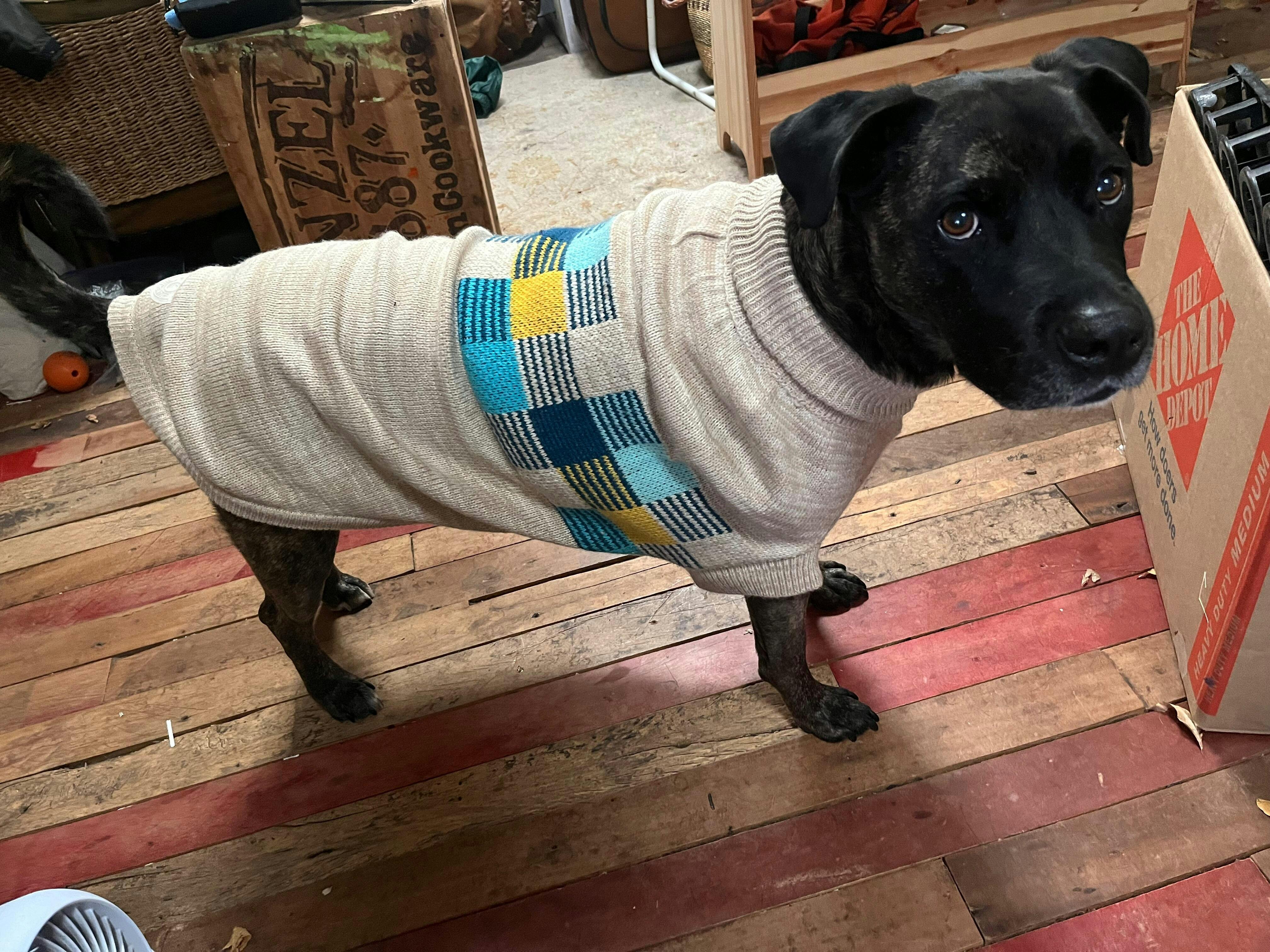 I love this sweater and so does Blue. It fits perfectly and he looks so warm and cozy. Perfect for winter days.