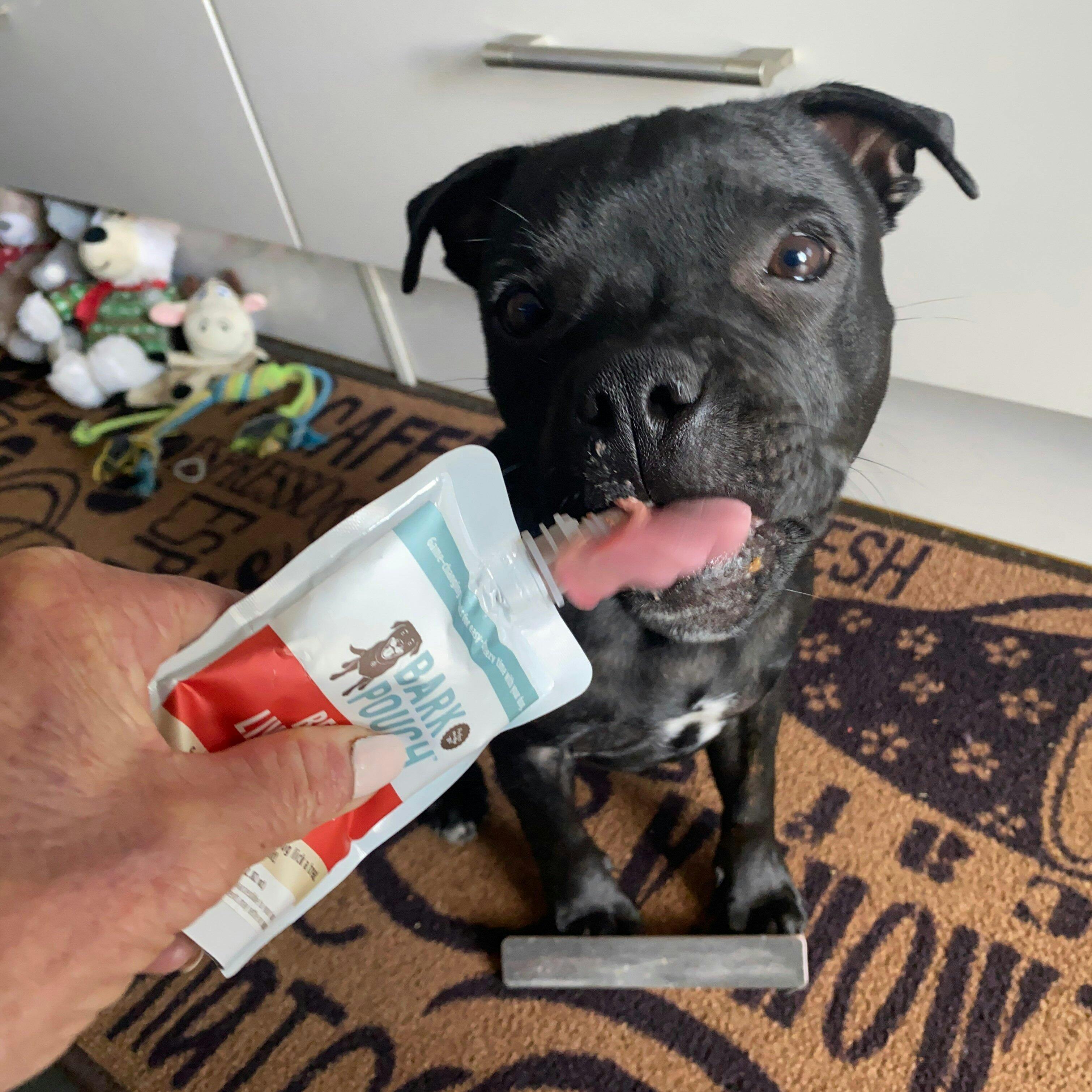 Whether you're working on teaching your dog tricks, overcoming fears or reactivity, Bark Pouch squeezable dog treats will quickly become your secret weapon! These easy-to-feed treat pouches are filled with delectable "high value" creamy treats that your dog will love.